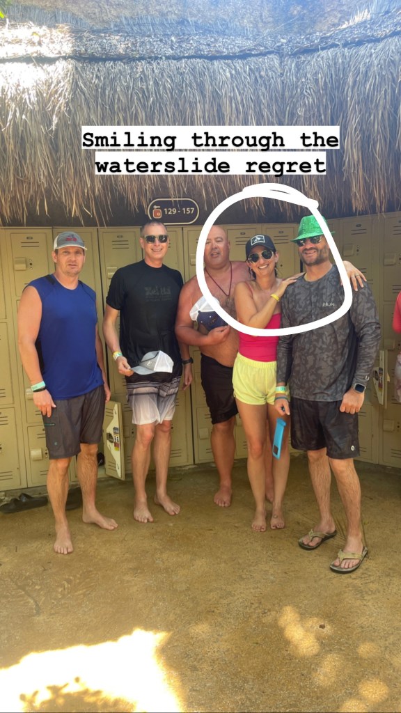 Oh, vacation life! Where nobody knows you except the yahoos you brought with you and so somehow you can convince yourself that you are the person who thinks 98-foot waterslides are fun and not just an un-prescribed enema/neti pot treatment.