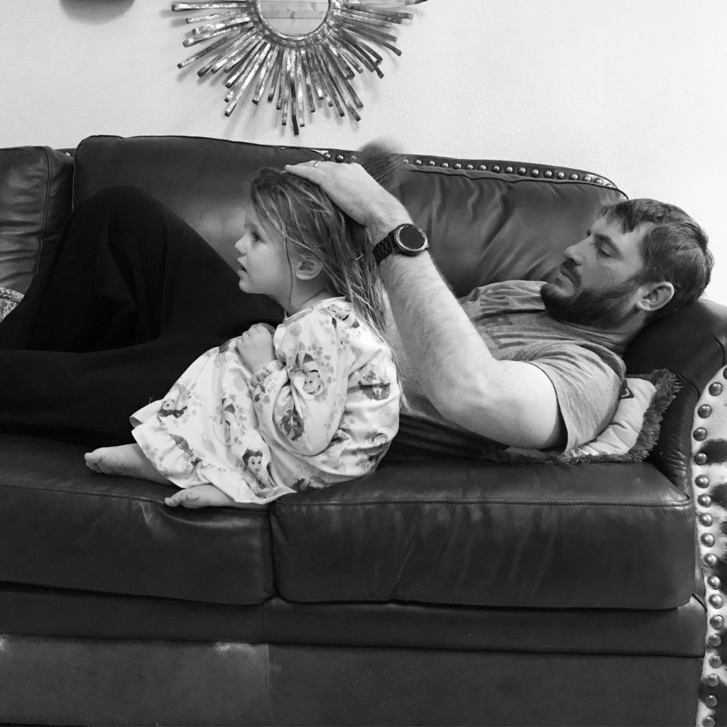 Before our daughters were born, my husband and I used to spend our evenings both tucked together under a blanket in our oversized chair. Then my belly started to grow bigger, and then there were three of us, and then there were four of us, and our arms became busy, our nights occupied by crying babies, then kids with the sniffles and teeth brushing and “Just one more book before bed, please.” I’ve only just recently remembered that ritual of ours. We’ve long gotten rid of that big old armchair.