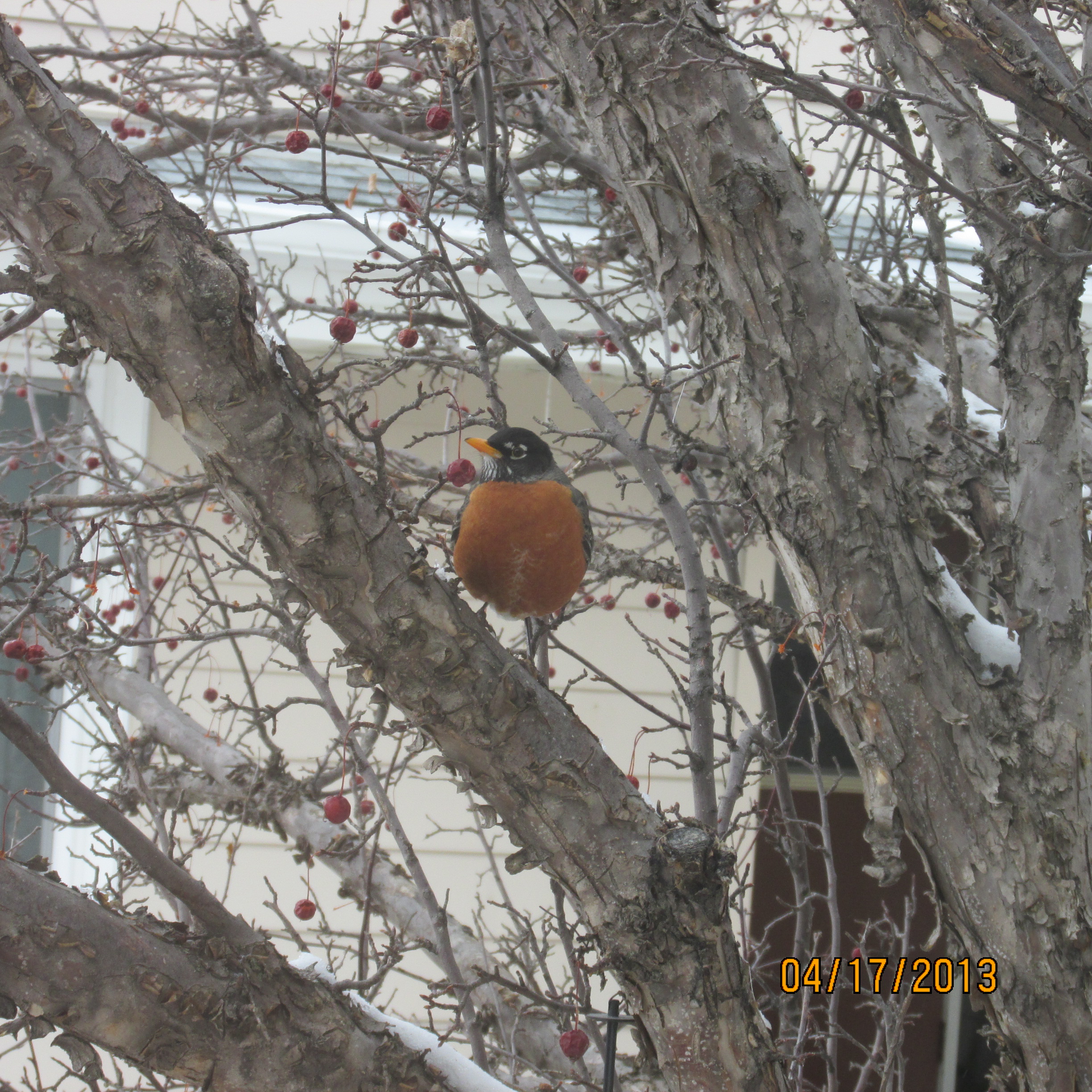 “Robins in a sea of white.”