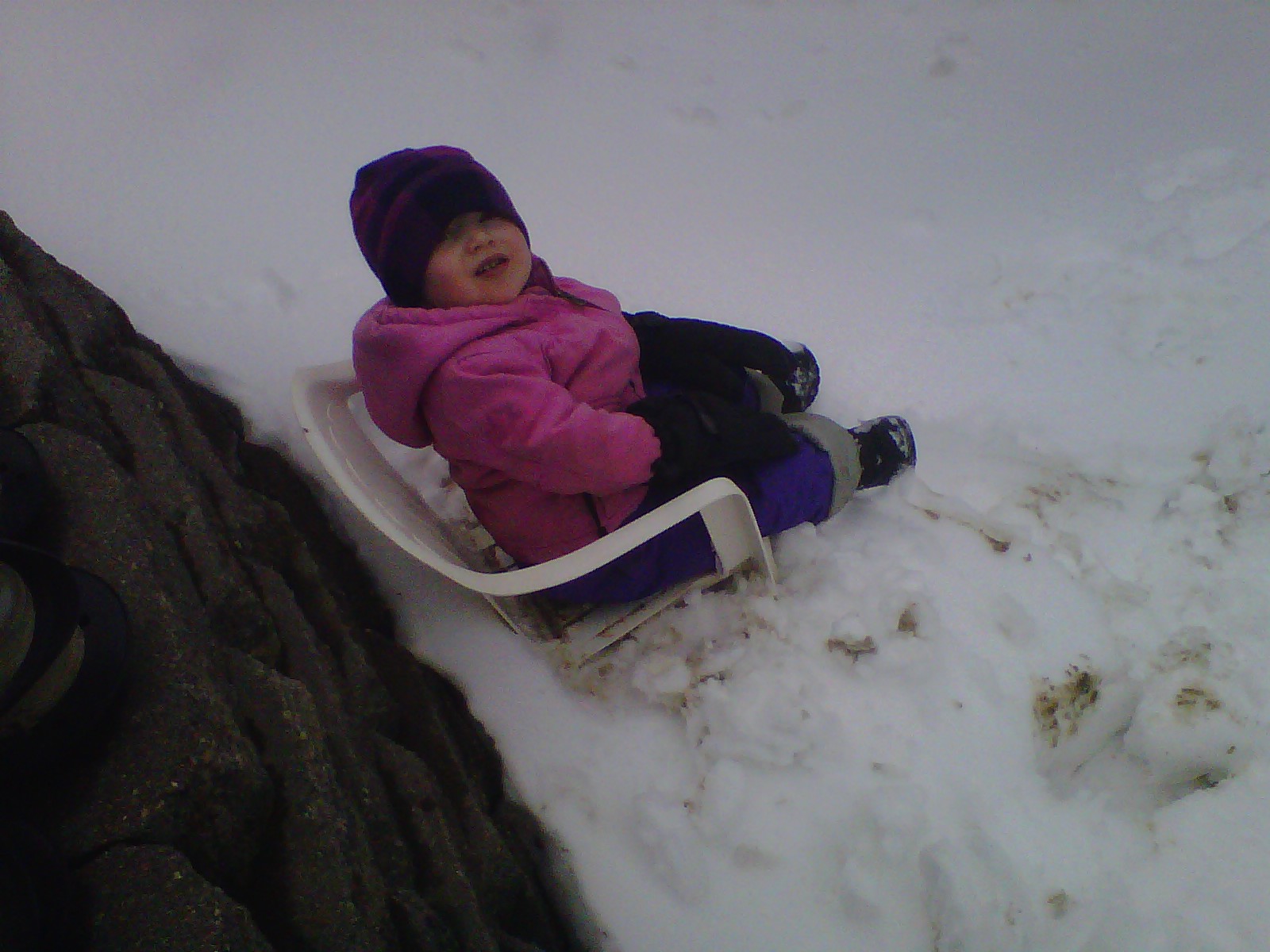 “I wish these weren’t my “spring” photos, but they are 😦 Ha! This photo is of Ty sitting in her lawn chair waiting for spring to come”