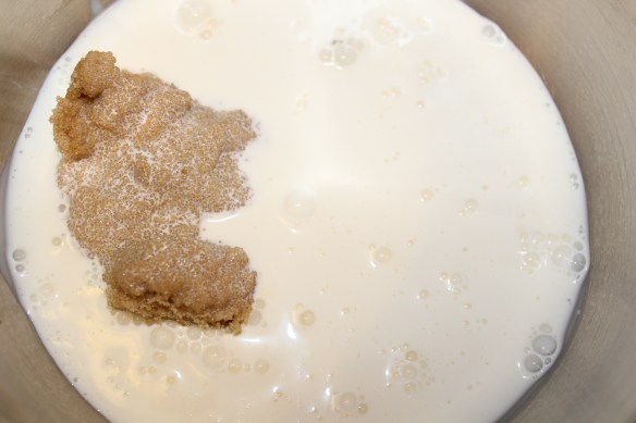Step 4: Pour brown sugar and cream in a medium sized mixing bowl and whisk together until they are nice and blended.