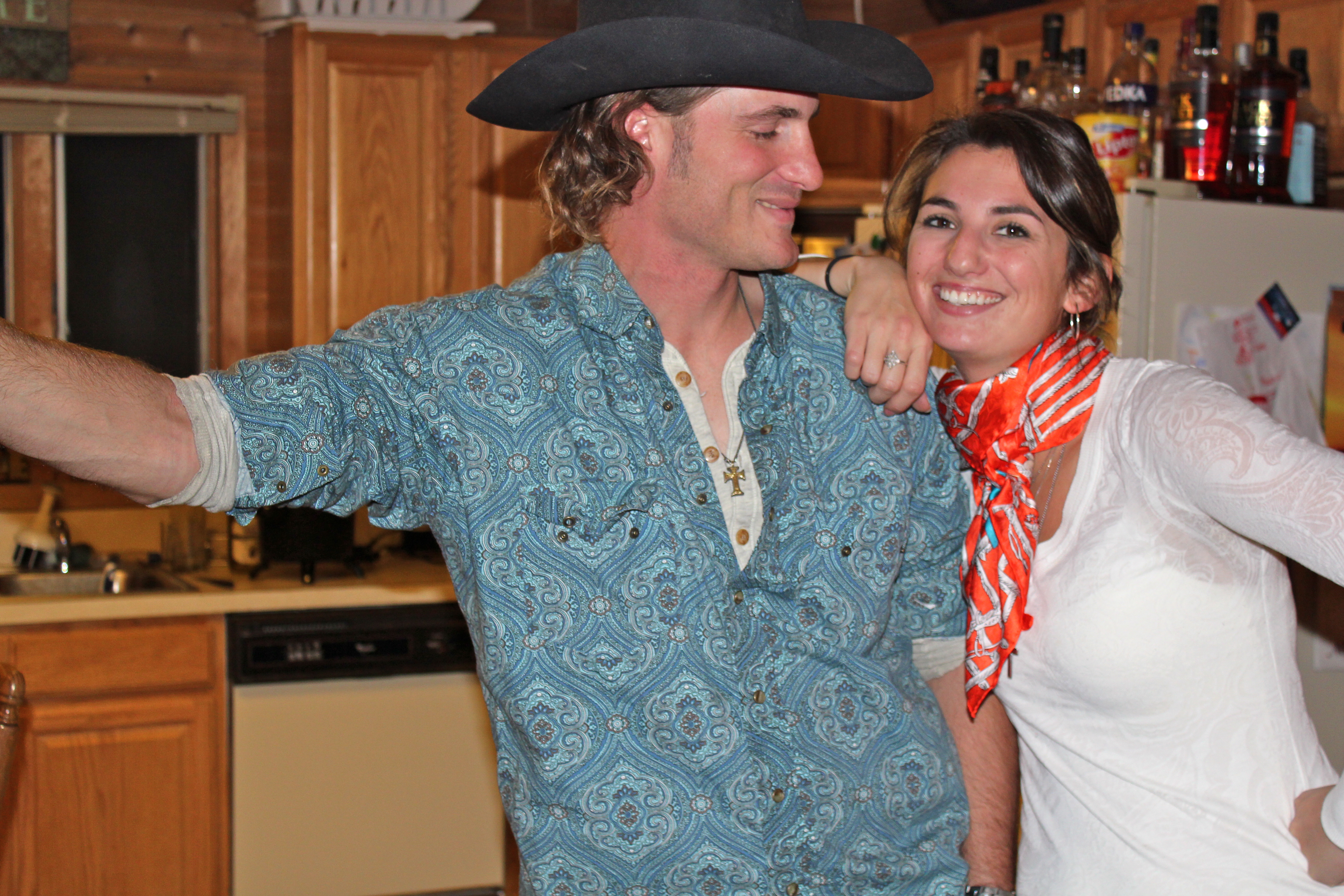Garth Brooks western shirt buttoned up to the top and a scrunchie on top of my head...yeah, that's what you're seeing here...