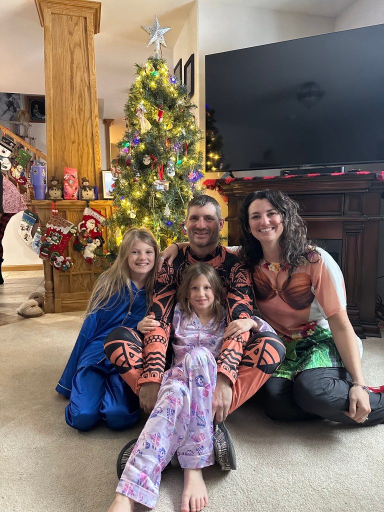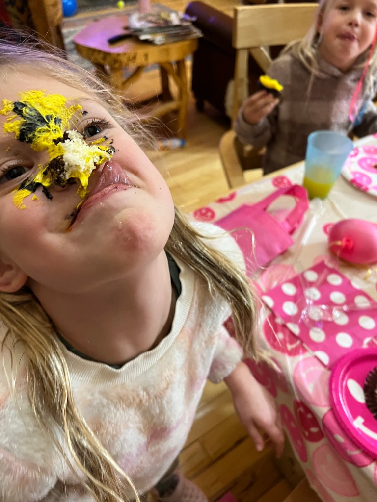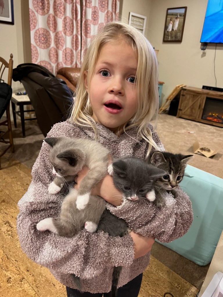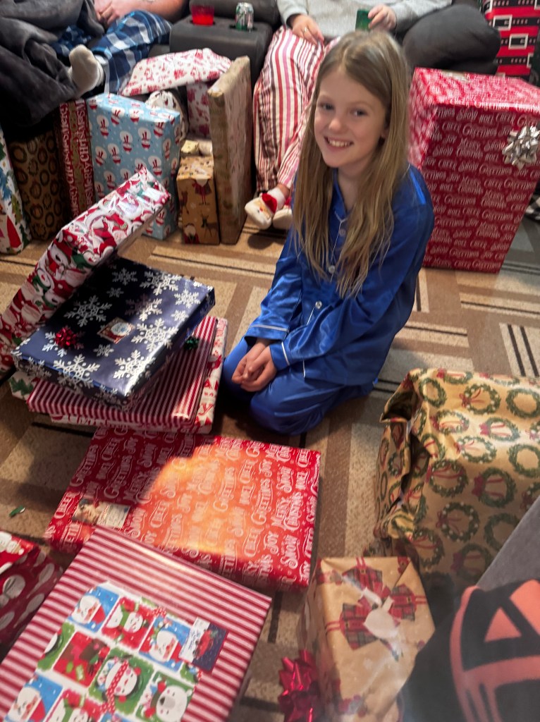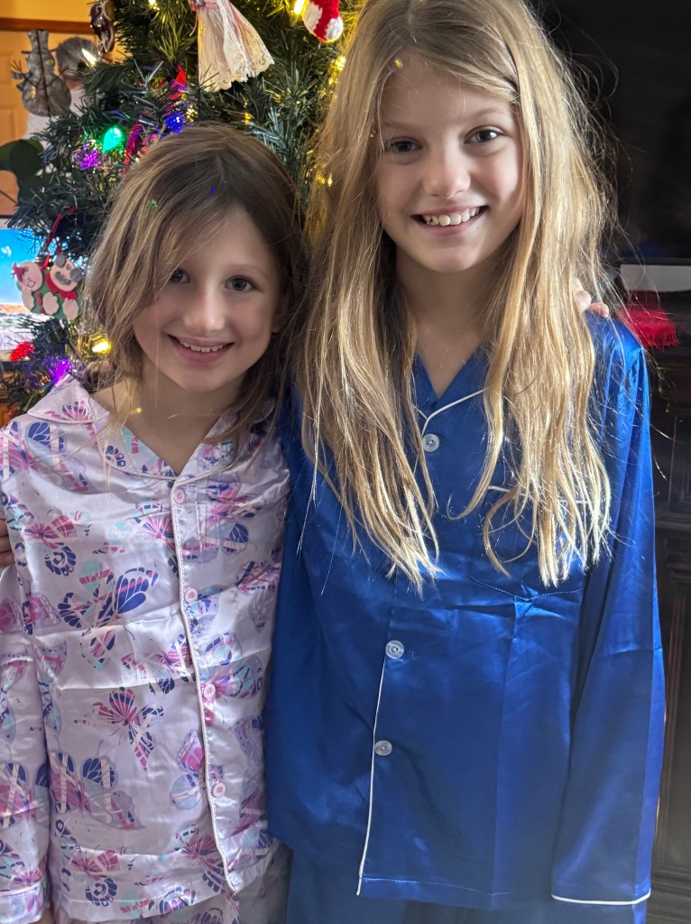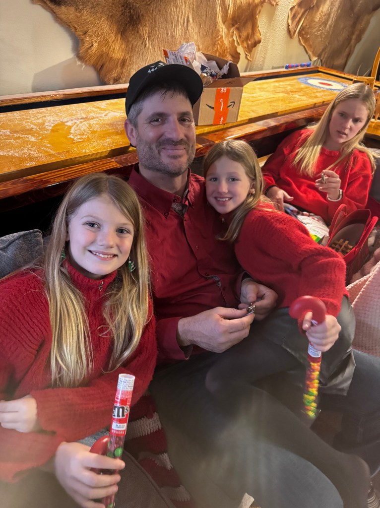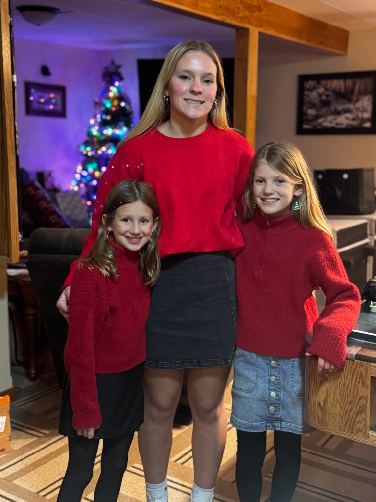 Last weekend I watched our daughters pile out of my dad’s big tractor and plop their little snow-suited bodies in the piles of big snow that had fallen on the ranch the past few days. They rode along with him as he cleared a path for our pickup to drive out in the West pasture to find a Christmas tree to cut and decorate. The sun had just come out and the sky was as blue as it can look, making that fresh snow sparkle and our daughters just ran like wild animals across that pasture while we examined the spindly wild cedars in the hills.