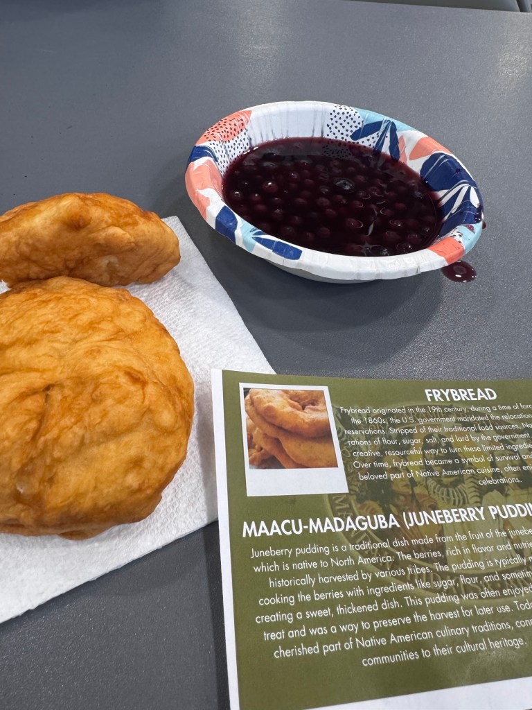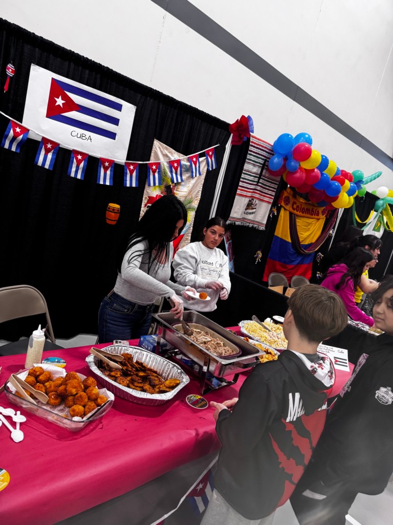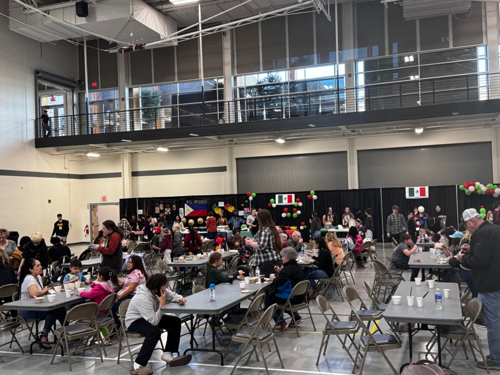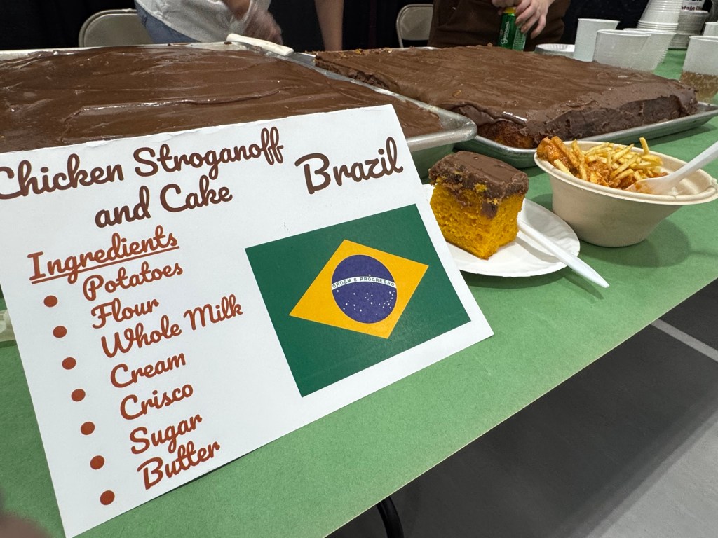 But from 4-7 pm central time on March 25, 2025 during Watford City High School’s parent teacher conferences I felt like we had it right. And it was simple. Shaking hands. Saying hello. Asking “What’s this now? What is it made of?” and then bringing it back to our tables and trying it and saying “It’s too spicy for me, but it’s good.” Or “This reminds me of the pudding my grandma used to make.” Or, “You have to go check out Brazil’s cake.”