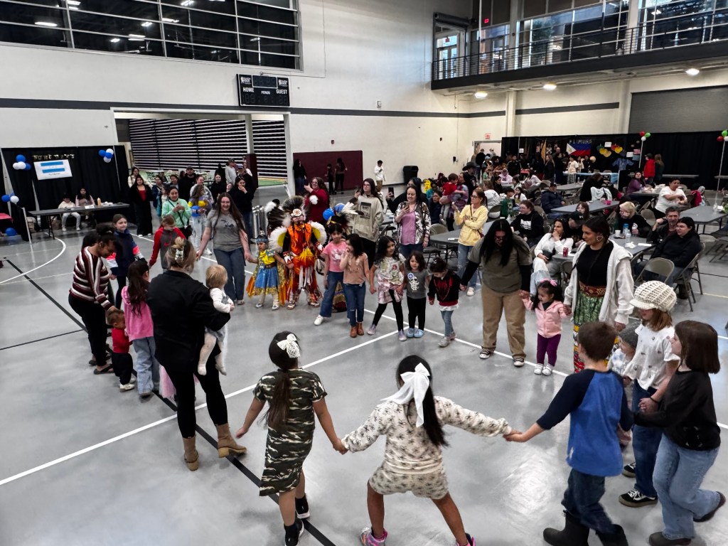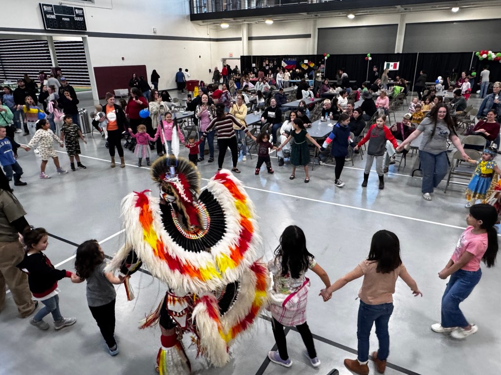 Which brings me back to the Cultural Fair. I don’t think anyone in that room would disagree when I say the event was that life vest. I stood on the stage in the middle of the room ready to introduce the MHA Nation Cultural Dancers and on every side of me were people I knew and loved and people I have never met, all ages, all backgrounds, some whose grandparents homesteaded this place and some who just took a new job here yesterday. At any given moment you could walk by a booth and hear members of our community speaking Spanish or Italian or catch a student on Facetime speaking German, showing their parents across the ocean what they’re up to tonight in their exchange program.